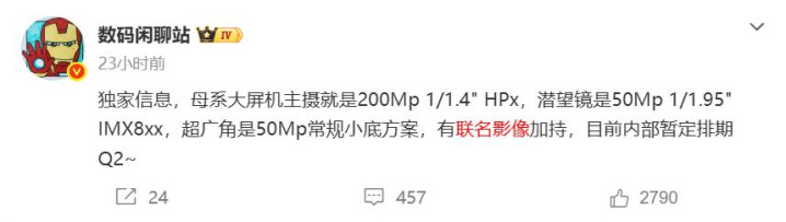 后置会采用徕卡三摄,有2亿像素高清主摄像头+5000万像素超广角摄像头+5000万像素3倍潜望式长焦摄像头,有潜望镜就满足了,拍照会更全面一些。
