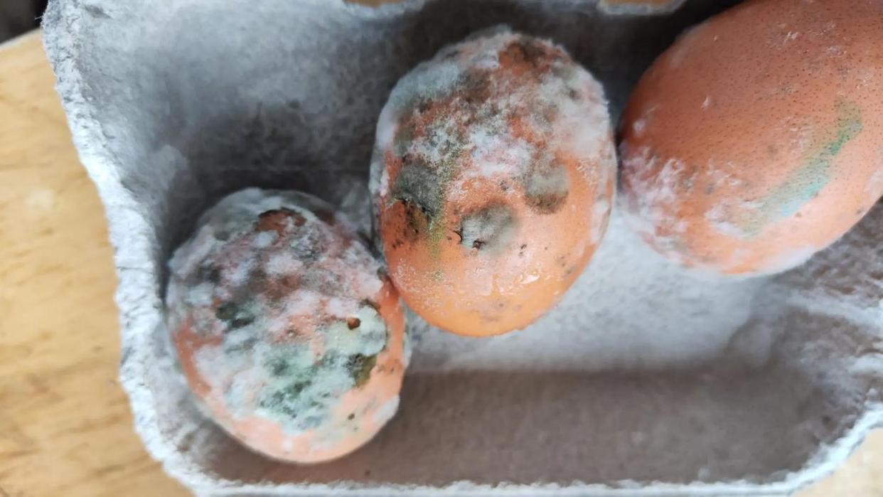 这时候你再打开鸡蛋,可能会闻到一股发酸或者发霉的怪味。遇到这种情况,整颗蛋都该扔掉,因为霉菌产生的毒素可能已经扩散开了。毒素耐高温,普通水煮杀不死。