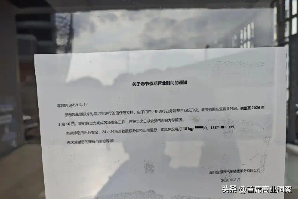 3月13号的时候,记者致电宝马客户热线,对方也表示,目前客服中心所收到的信息和门店大门所张贴的信息一致:因为业务原因要到3月16号才能恢复营业。